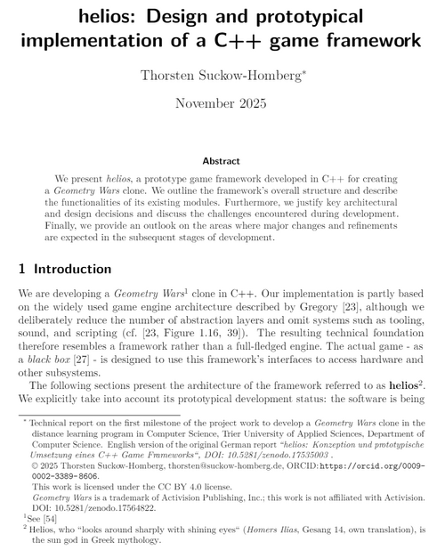 I’ve published an accompanying technical report on my game framework helios that outlines the key architectural decisions behind the prototype and discusses its further development.